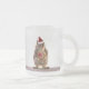Julen gömma sig med candy canefotoet av en gullig ekorre som ha på sig en röda och vitjultomten hatt och innehav en candy cane med en stor röd bandpilbåge på den. Ekorren står på ett trädäck, och bakgrunden är totalt vit. En roligt, gullig ekorrebild som hjälper dig att fira jul.