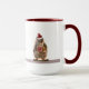 Julen gömma sig med candy canefotoet av en gullig ekorre som ha på sig en röda och vitjultomten hatt och innehav en candy cane med en stor röd bandpilbåge på den. Ekorren står på ett trädäck, och bakgrunden är totalt vit. En roligt, gullig ekorrebild som hjälper dig att fira jul.
