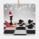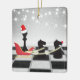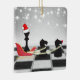 Den här roliga julprydnadsdesignen har tomtens själ och renar. Jultomten är Kung-schackens biet som bär en julhatt och renarna är två Knight-schess delarare. De är på ett schackbräde framför en vinterscen i snö med helgdag. Anpassa ryggen med namn och år!