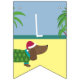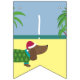 Den här roligten har en söt dachsund på en strand med handflatan träd. Ta en titt på vår matchande tabellvara och inbjudningar för att göra julen i juli i firande unik.