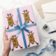Kute Rosa Hjort Kids Julafton, Teckning, Papper. En rolig renare med röd näsa på rosa. Perfekt för inslagning av barn jul- eller födelsedagspresent.