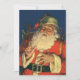 Vintage-illustration God jul-helgdesign med en glad, jovial tomte med långt vitt skägg och hatt som bär en säck full av leksaker på julafton.