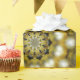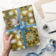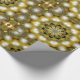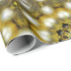 En gyllene julomslutning papper med ett kalejdoskop mönster av glittrande julbalkar från guld och silver som utgör en mycket dekorativ, elegant omslutning.