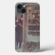 Vintageillustration Viktoriansk God Jul-bild med en skara glada människor utanför i snön som väntar på att gå till en vintersammankomst. God Jul önskar!