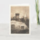 Julillustrationvisning Santa i endragen sleigh atop ett tak bredvid en lampglas med meddelandet: "Stoppar jultomten behar här". Wood gravyr för vintagejulafton som skapas i 1889 av konstnären/illustratören Thomas Nast.