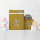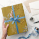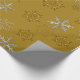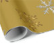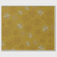 Silver och guld snöflingan i mönster, papper julomslutning. Kvalitetspressen på en rulle har valfria längdalternativ. Mörk guld pappert har stora mönster i snöflingor och kristaller i silver grått och guld färg.