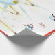Den här utformningen har en vit och blå snöflinga, ett gyllene träd, färgad snöflingor och många snögubbar som är klädda för en kall julsäsong. Ett rött gräns lades till. Denna papper för julomslagning finns i olika stilar, färg och storlekar.