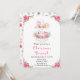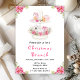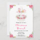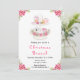 Denna eleganta och festliga inbjudan till julbrunch har en tårttallrik med julsockerkakor, makaroner, godis, varm choklad och en tekanna. I hörnen finns vackra rosa julstjärnor. Texten kombinerar handskriven script och sans serif-teckensnitt för en stilren och modern look. Detta är perfekt för en julbrunch eller tefest.
