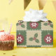Fyra kvadrerar i grönt, och solbrännan smyckas med röda prydnadar som dekoreras med vitsnöflingor och, görar grön järnek med röda bär. Att sy för vit tillfogar ett dekorativt handlag som ger det upprepande mönster det utseendemässigt av ett täcke och att skapa en perfekt mysigt känsla för julhelgdag.
