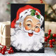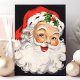 Vintage julenisse ansikte jul julkort. Denna design har en leende tomte på svart bakgrund. Vad en vacker retro julstämning. Anpassa denna anpassade design med din egen personliga hälsning.
