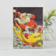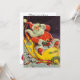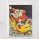 Lätt att anpassa julinbjudan, lägg bara till din festinformation! Julillustration Julbild med en glad 50-tals retro tomte som flyger ett science fiction-rymdskepp över en sömnig stad på julafton.
