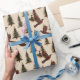 Julens Abstrakt Fåglar och Träd Wrapping Papper Presentpapper