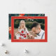 Vackra röda blommigtar Ett jokerkort för elegant av foto har en söt och en delikat båge med mittfoto och ett festivt rött och grönt färglöst botaniskt mönster på baksidan av helgdag-kortet. Anpassa med personligen namn och fotot!