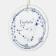 Dekorera träd i celestial stil i julhelg med vår blå kelestiala julprydnad! Med en vacker Capricorn-konstellation i kransens centrum, en unik prydnadspopp mot en vit bakgrund. Anpassa den med namn och födelsedatum på baksidan för speciell beröring. Perfekt för att tillföra helgdag dekor eller zodiac-gåva ett magiskt drag.