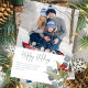 Den här designen har röda julklappsbär, med foto 2 med två bild-familjers layout, botaniskt grönt vinterblad, en vattenfärgad röd grönt blå silver, elegant gräs gren twig grenar, klassisk eucalyptus helgdag, och skript-kalligrafi, med modernt calligraphy-skript, modernt löv, ett vackert elegant med flera fotosamlingar och trendig.