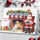 Framsidan av detta julhälsningskort har en bild av en fläckig röd och vit Hund med engelska bokstäver som har funnit att Jultomten vilar bredvid blazingerbladen efter att ha levererat familjegåvor. Tomten har en sista paket. Texten på sidan säger "För mig, tomten". All text, både in och ut, är anpassade, så du kan ändra den eller lägga till den, om du vill. Se mer Setter hund bilder, tillsammans med dussintals andra hund aveln-produkter, i Hund Village.