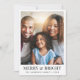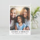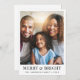 Modern julkort med Julhälsningar bilder, "Merry & Bright" i elegant-typografi och namn och året i enkel typografi.