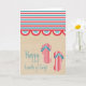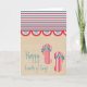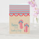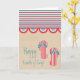 Julens 4:e Beach Party-hälsningskort med fet rand, en roligt, skalad kant-banderoll, söt flinflip flops och en texturerad brunt papper bakgrund. Detta kort för roligt i toppen är ett underbart sätt att önska vänner och familj lycklig 4 juli! Enkel att anpassa, lägg bara till ditt eget meddelande om hälsning och/eller personlig.