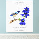 I juli månad poster blomman med en blåfågel och larkspur är en vacker återgivning av naturens harmoni. Perfekt för födelsedagar i juli eller fågel älskare... -...för in en del av utomhusen i ditt hem.