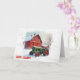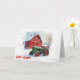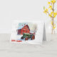 En grönt jordbrukstraktor och en röd lada i snö med en abstrakt mask gräns på en texturerad vit bakgrund. Inomliggande meddelande kan ändras.