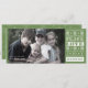 Joy, Peace, Kärlek helgdag-fotokort i Grönt, den här designen har ett helgdag i julen, ett foto i familjen 1 ett bild, ett kärlek-stipografi i fred, vintage-typsnitt i god jul, stjärnigt snöflummiskt mönster, traditionell elegant, helgdag gammalmodig modern, enkel minimal kalligrafi, förenklad-hälsningskort, julfotokort, klassande elegans