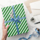 Julens Grönt och vit diagonal Candy cane Rand Presentpapper