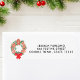 Den här returadressetiketten är dekorerad med en vattenfärgad krans av julkakor och festive greenery. Enkelt anpassade. Ursprunglig vattenfärg © Michele Davies.