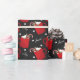 Den här helgdagarna har en röd mugg av hett choklad med marshmallow, polkagrisar och holly på svart bakgrund.