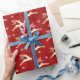 Den här dekorativa pappra inslagningen är ett charmerande mönster av att ta hjort mot en röd rik. Snöflingor och träd kompletterar de lekfulla silhuetterna och skapar en glatt och festlig atmosfär.