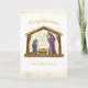 Detta julkort för kristna högtider har en konstnärligt tecknad krubba med krubba på vit bakgrund med guldkonfetti. Ovanför står "God Jul" med ditt namn under för att anpassa med falsk guldtypografi. Designad av den världsberömda konstnären ©Tim Coffey.