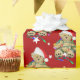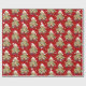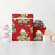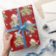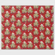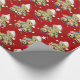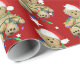 Den bruna nallen trasslade in sig i jul ljus på röd bakgrund med vita stjärnor.