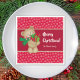 Lägg till lite säsong till ditt kök bord med den här vackra helgdag pappra napkin. Papper napkin har en nalle som bär en grönt scarf och som bär julklappar och candy cane. Bakgrunden är röd och vit snöflingor faller. Över hela mitten är ett mörk rött band med guld gräns och utrymme för hälsning och namn i God jul. Gör ett underbart tillägg till en julfest!
