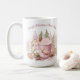 Jul mugg med hett choklad mugg, träd och gingerbröd i rosa, beige och grönt i shabby chic vibes. Elegant och söt juldesign. Anpassa texten enkelt. Besök butiken för den tillgängliga fullt - Kate Eden Art