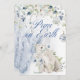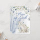 Vattenskort med magisk vinterfärg, julkort med polar av skogsmark, med snö blad och blommigt tvättat med blues och gröntar. Typografi i blått "Fred på jorden"