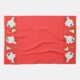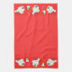 Cute helgdag cookie med en polar björn i tomteskäglet. Att dansa snögubbe och candy cane mot en glatt röd bakgrund