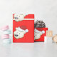 Den grå Polarna i helgdag är i tomten. Att dansa snögubbe och candy cane mot en glatt röd bakgrund