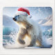 En polar bär en julhatt genom isig vatten som skapar dynamiskt stänk runt tassar