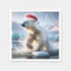 En polar bär en julhatt genom isig vatten som skapar dynamiskt stänk runt tassar