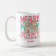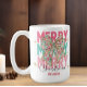 Lägg till en munter av helgdag på morgonen med den här personligen "God jul" mugg som har en fin blommigt. Den pulserande rosa- och grönten är accentuerad med guld-beröring och fet "MERRY"-skrift, skapar den som en roligt och snyggt säsong-gåva. Anpassa till namn för ett tankfullt Julklapp för familj, vänner, lärare eller medarbetare. Perfekt för kaffe, te eller hett kakao under hela säsongen.