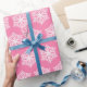 Lägg dina julklappar på ett elegant sätt med den här rosan inslagna pappert med vit snöflingor mönster.