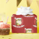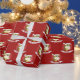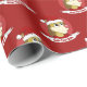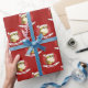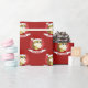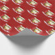 Röd julomslutning papper med en illustration av en söt lejon med rött julomslag; underbar dekoration för helgdagar till jul, redigerbar malldesign med anpassningsbar fält för egen text, illustrerad av Radka Kavalcova