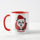 Jul mugg med illustration av en söt pandabjörn med julhatt; underbar dekoration för helgdagar till jul, redigerbar malldesign med anpassningsbar fält för egen text, illustrerad av Radka Kavalcova