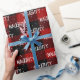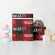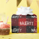 Vit NAUGHTY-text med snöflingor på röd och svart buffelbaksida. Text kan redigeras.