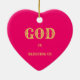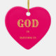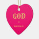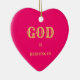 Meningsfull julgransprydnad med texten Gud välsignar oss på magenta röd bakgrund. Texten Välsignar oss kan anpassas. Räkna dina välsignelser!