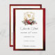 Trötthet och elegant, men ändå en helgdag-temad bröllop spara datum-design med klassisk handdragen vapensköld för blommigt i guld som accentueras av en färgspray med röda och vita julblommor och grindar. Den här formella anpassningsbarna innehåller redigerbar textgrafik i fält, i anpassningsbar och textgrafik i guld och texturerat gräns i. Baksidan har extra text fält och kompletterande blommigt av julföremål.