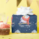 Späd vattenfärgsfågel med vinterscarf och Glad helg på mörk blått bakgrund med snöflingor. Bakgrunden till färg kan ändras.