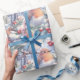 Vattenfärgade vita och okerfåglar sitter i träd med bär. Detta papper om julomslutning ger helgdag en aning irritation.