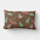 En söt julkudde med en fin mönster av vinterfåglar i sötare, Julgranar, löv, röda hollybär och slips med presenter på brunt underlag för att lägga till en roligt och designer i ditt hem för helgdagarna.