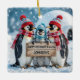 Julfamilj Penguins med träskylt Julgransprydnad Keramik