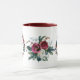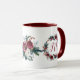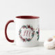 Den roliga moderna julfamiljen keepé monogrammad mugg med en traditionell stil-röd burgundy och gräs-grönt-heliga, poinsettia, röd ros och fir-grenar-säsong och en ro-buquet på en klar vit (utbytbar) bakgrund.+++++++++) Anpassa den med din familj namn initialt!